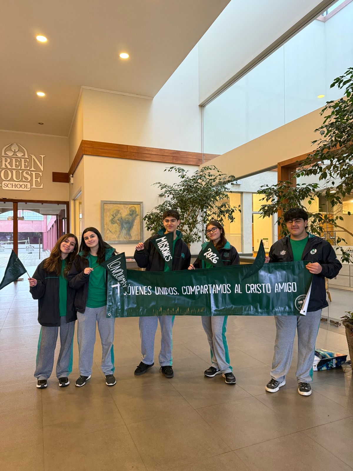 Guiados por el padre Sergio Abarca, capellán del Colegio, y por Mr. Álvaro Almendra, profesor de Religión y asesor del área, el Consejo de Misiones —conformado por estudiantes de II° a IV° medio— organizó una serie de actividades para difundir el espíritu misionero y los Trabajos de Verano Greenhouse entre toda la comunidad educativa, llevando el mensaje de Jesús Resucitado.