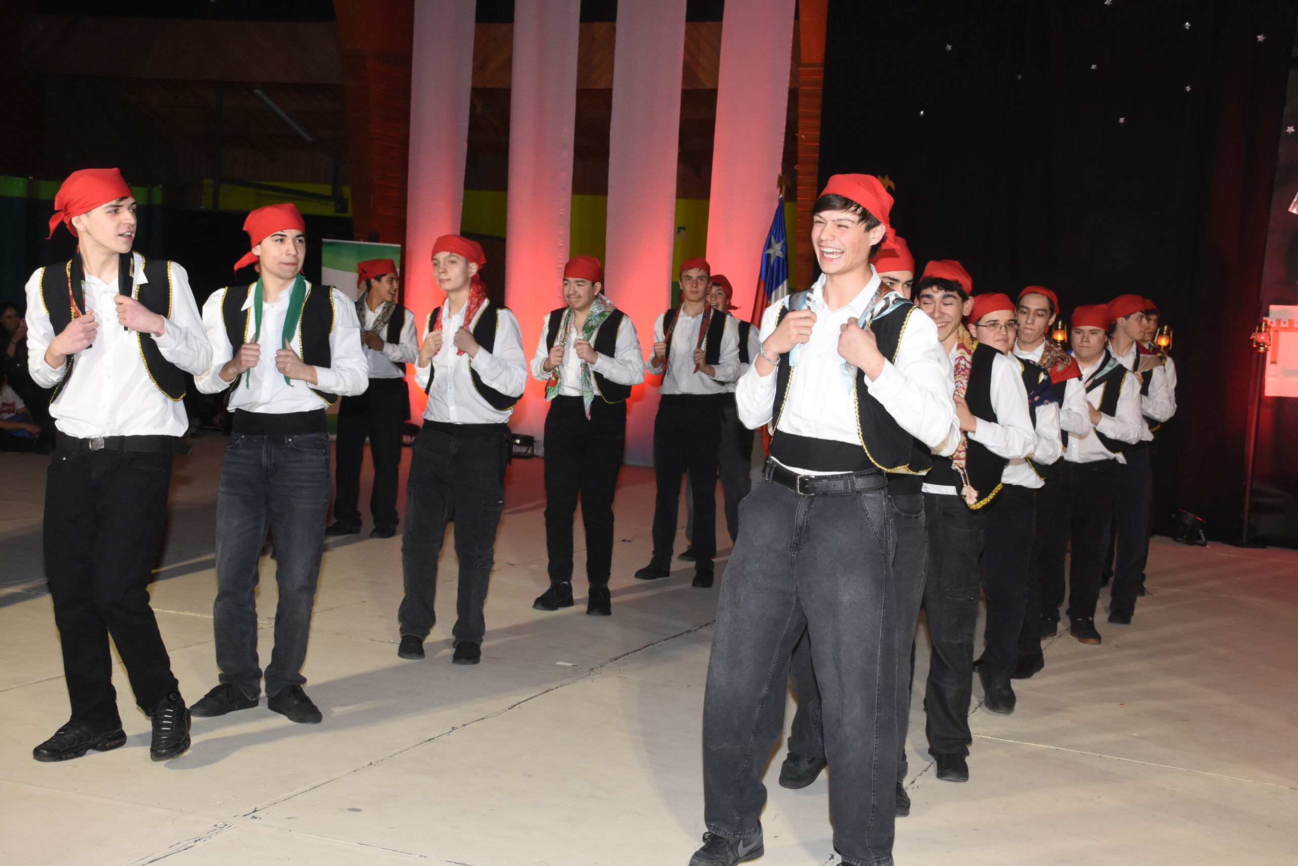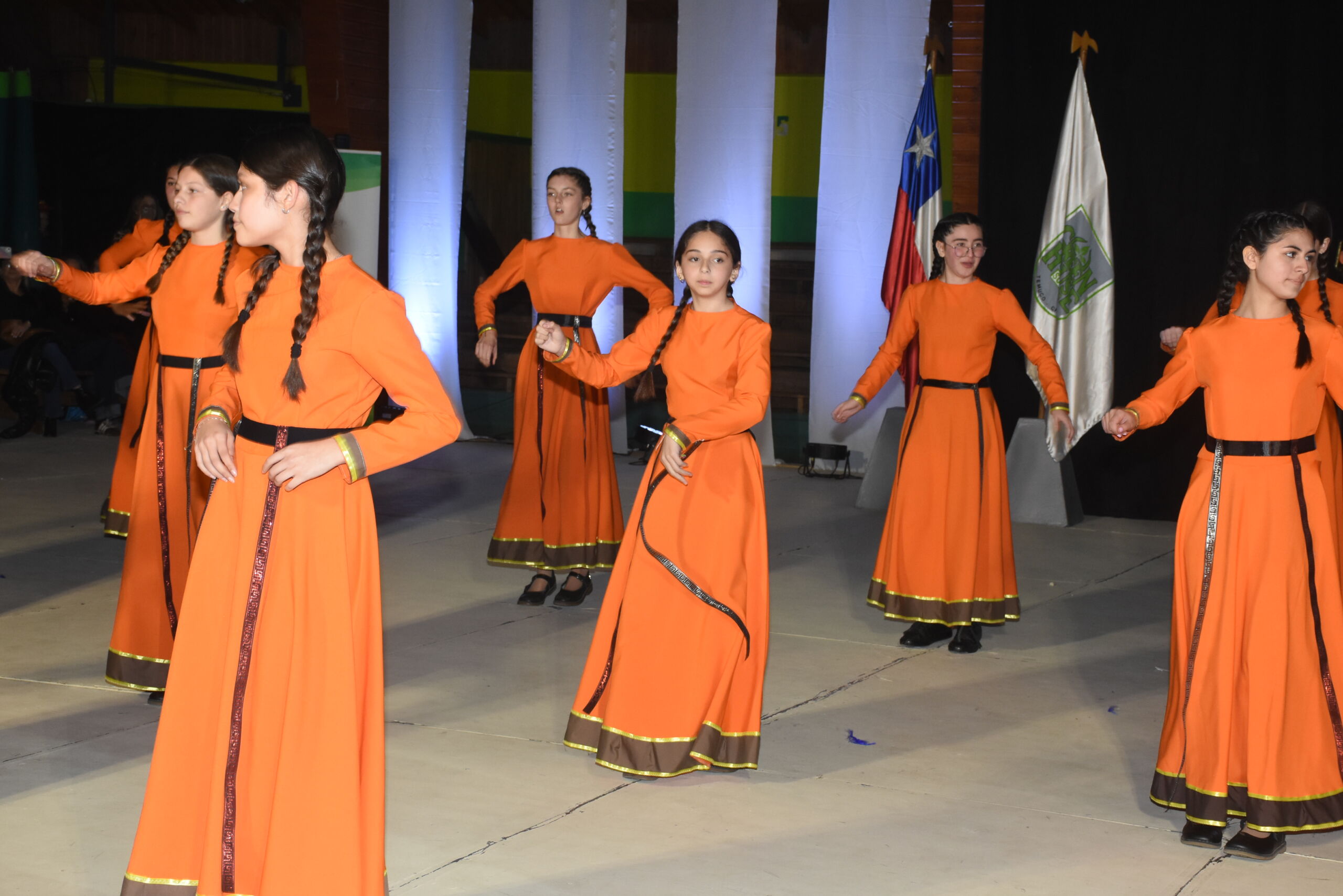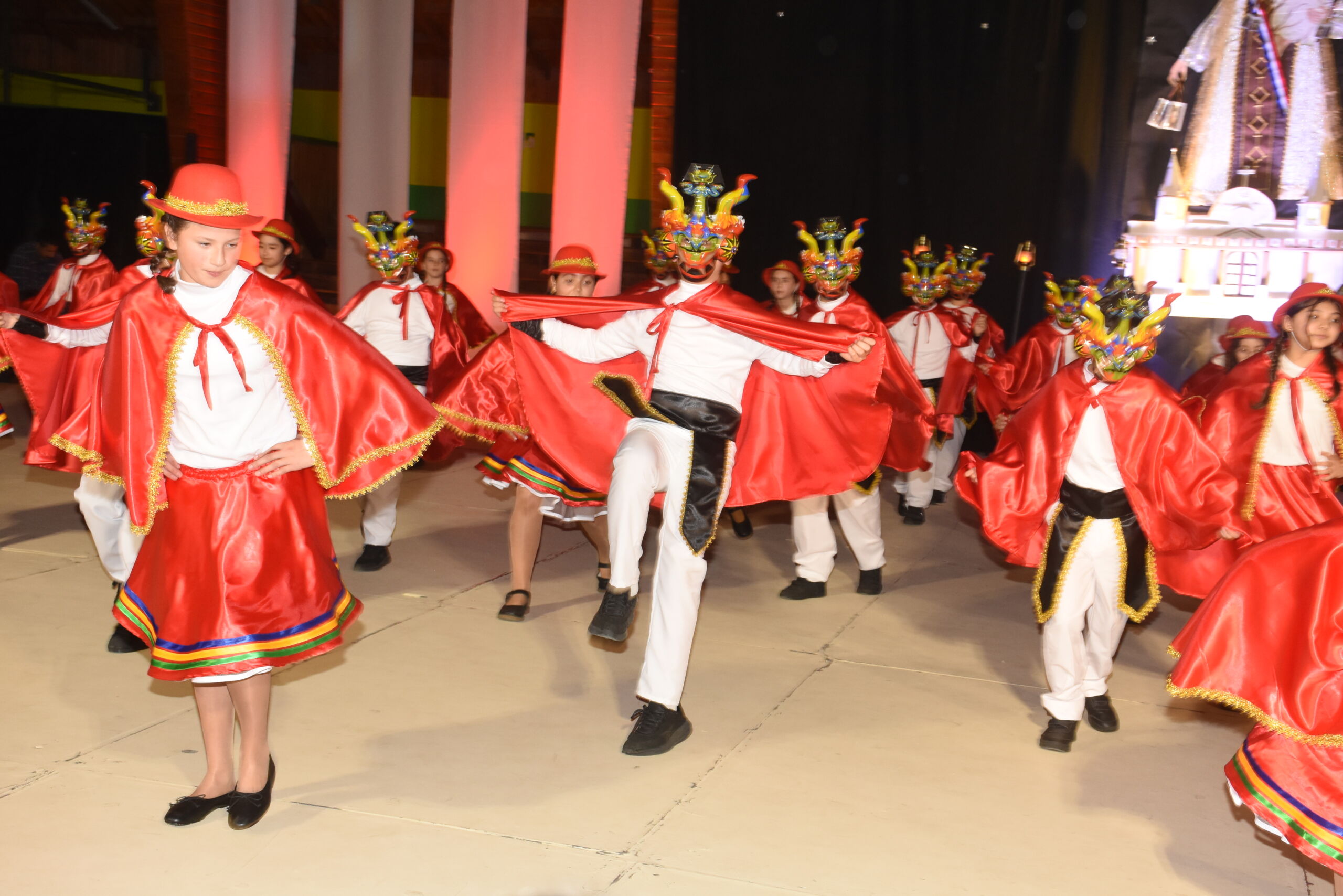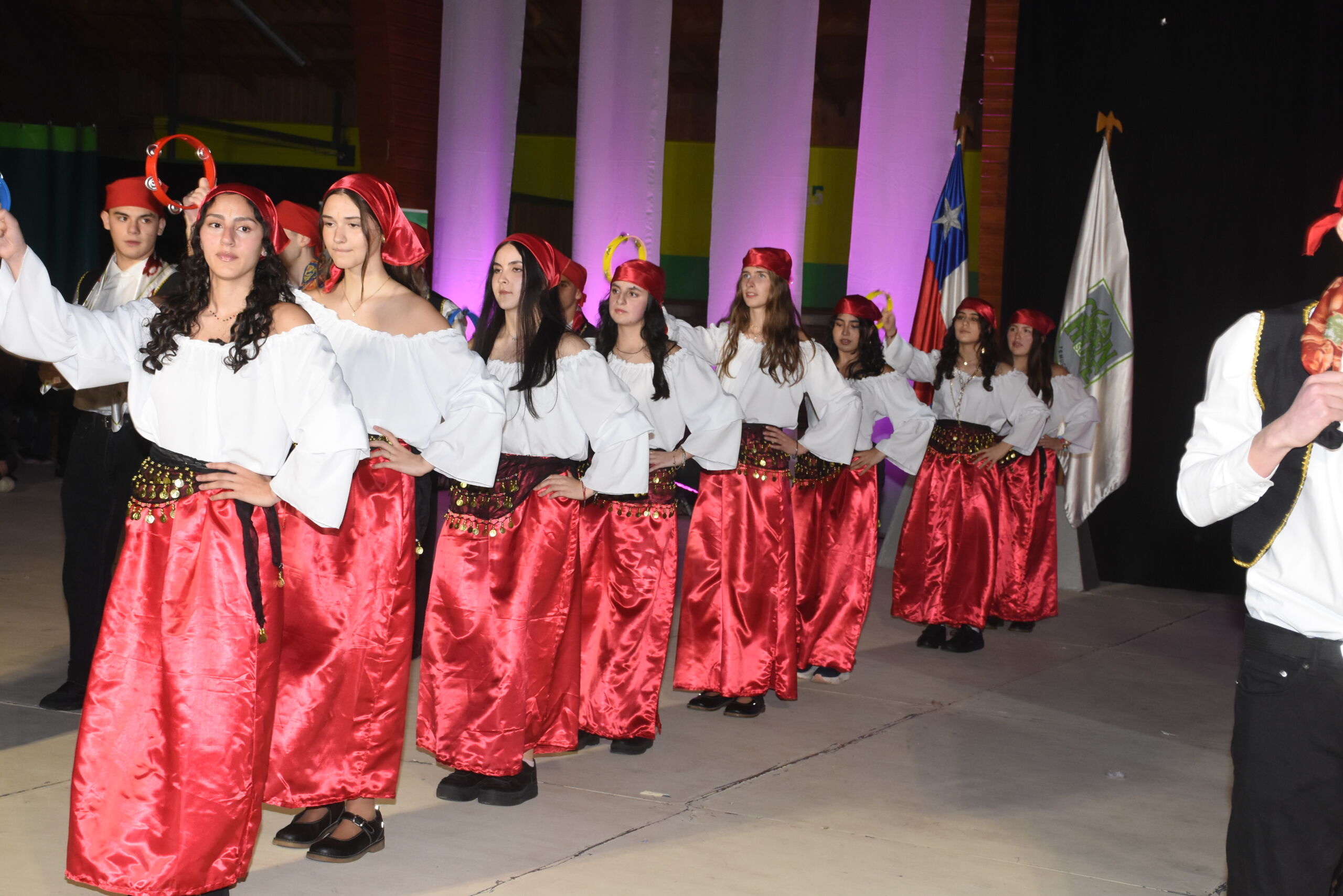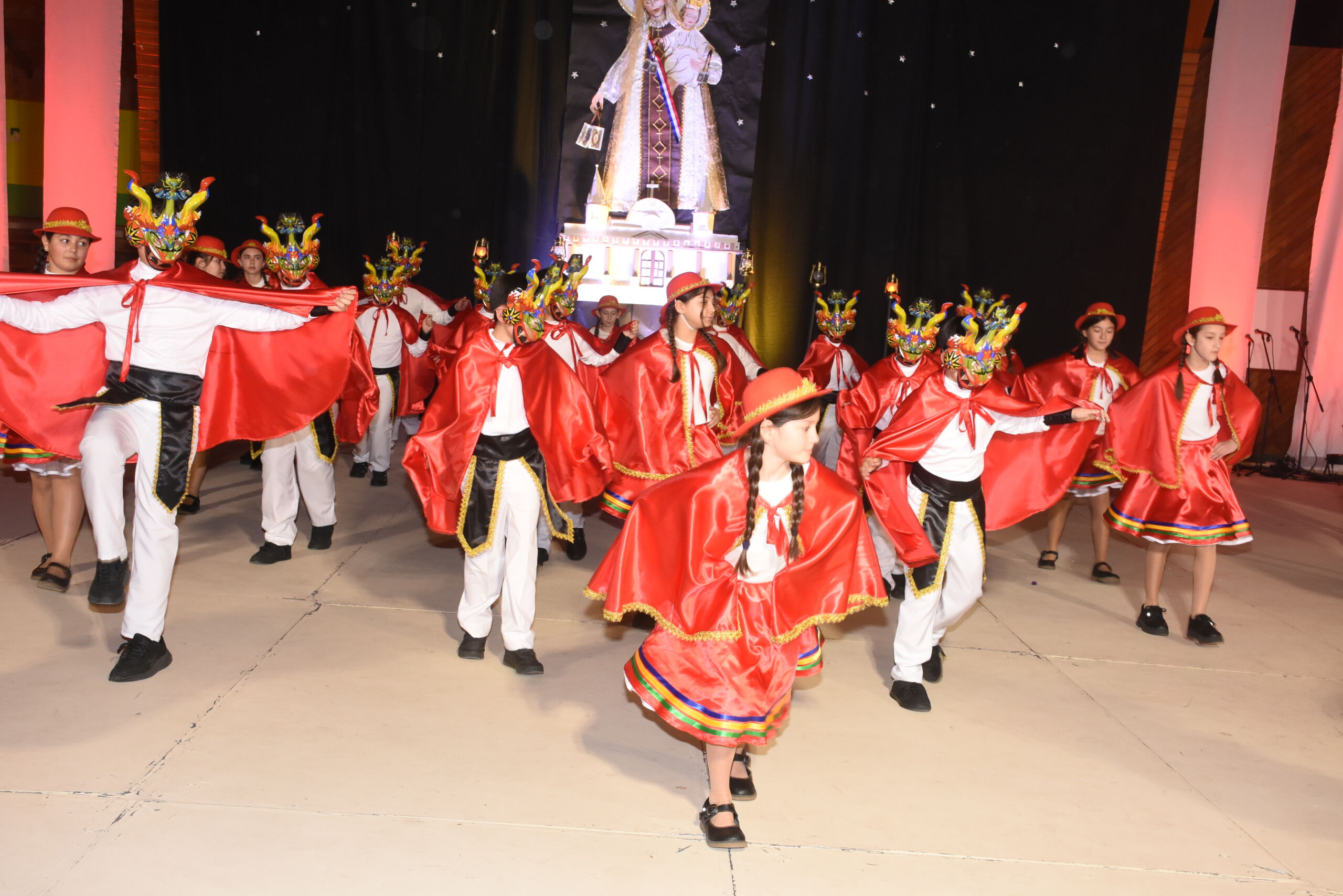 Desde 1° básico hasta IV° medio, nuestros alumnos junto a los profesores de Educación Física se unieron en un espectáculo inspirado en La Tirana y en los bailes nortinos, en homenaje a la Virgen del Carmen, patrona de Chile.