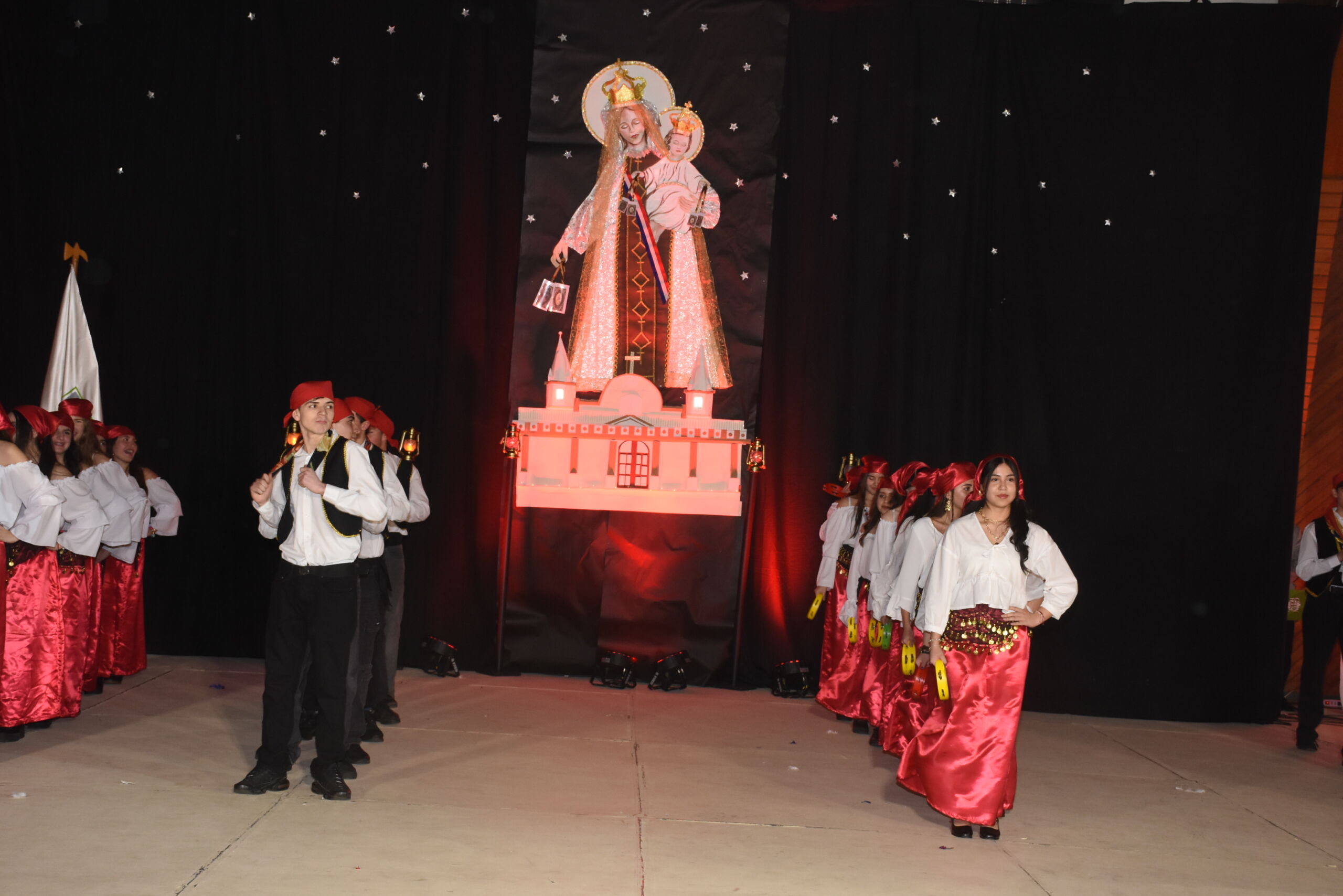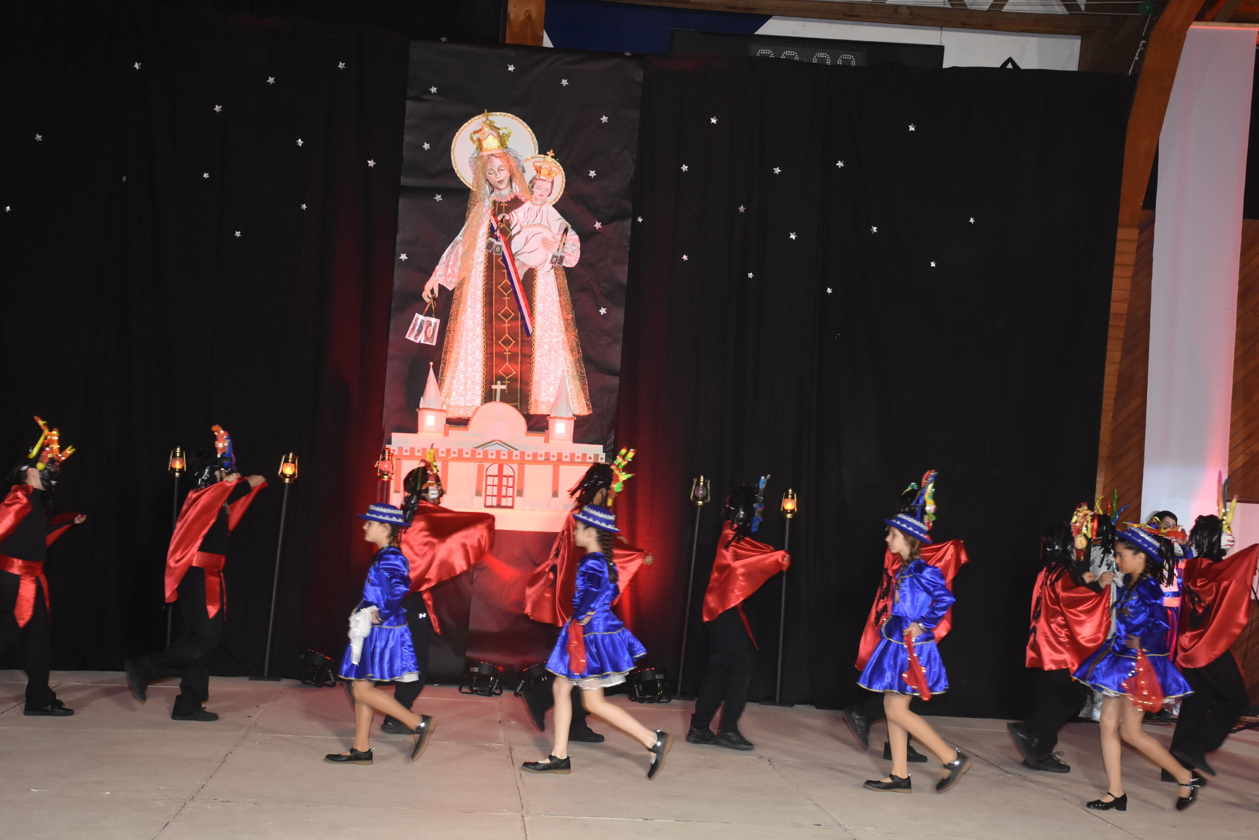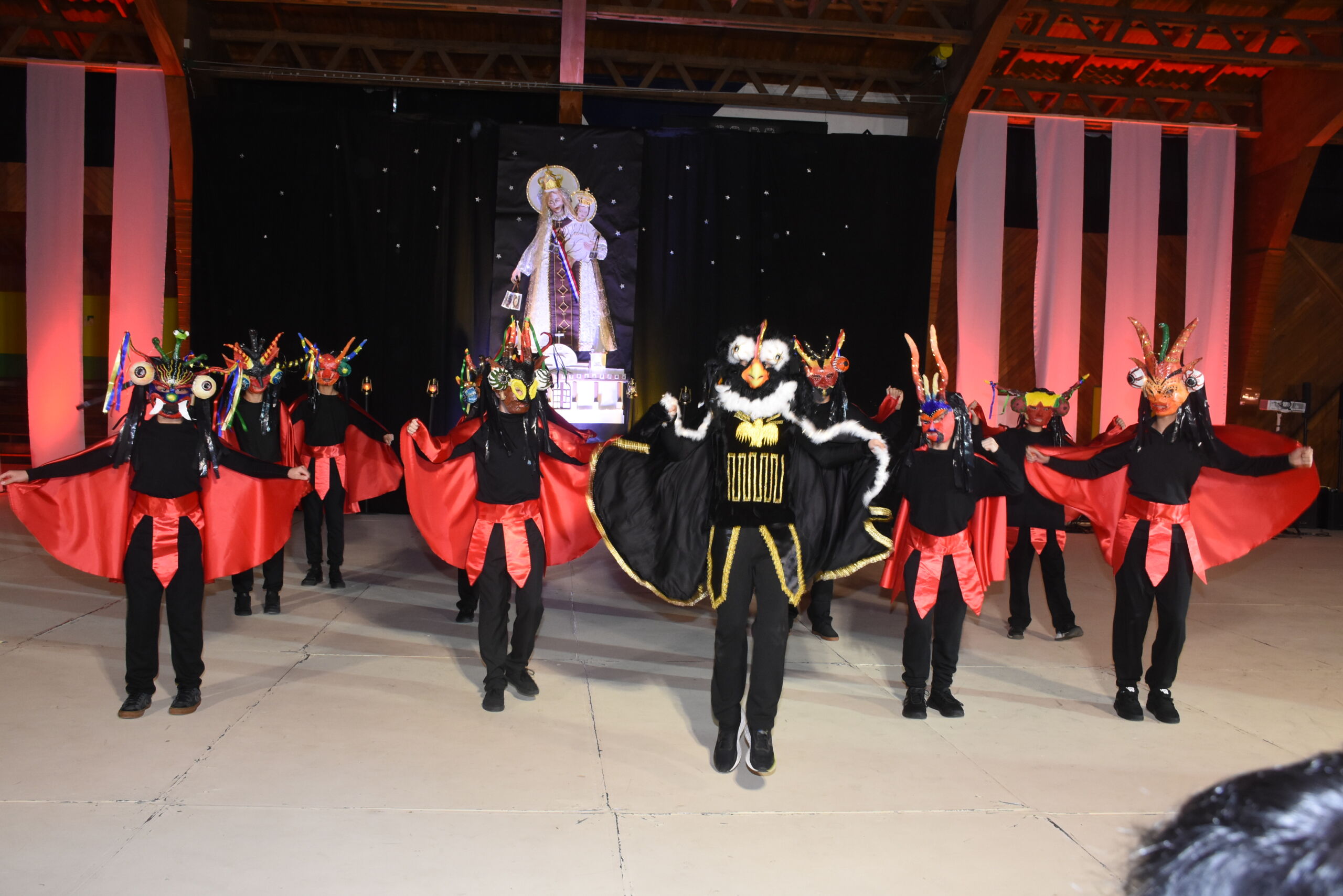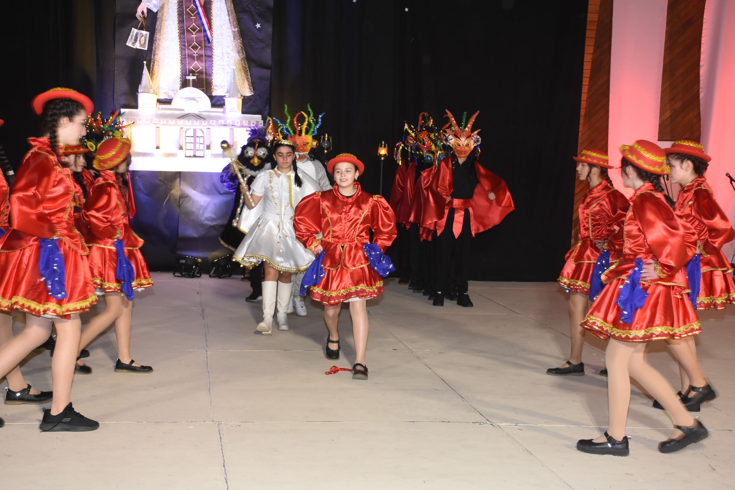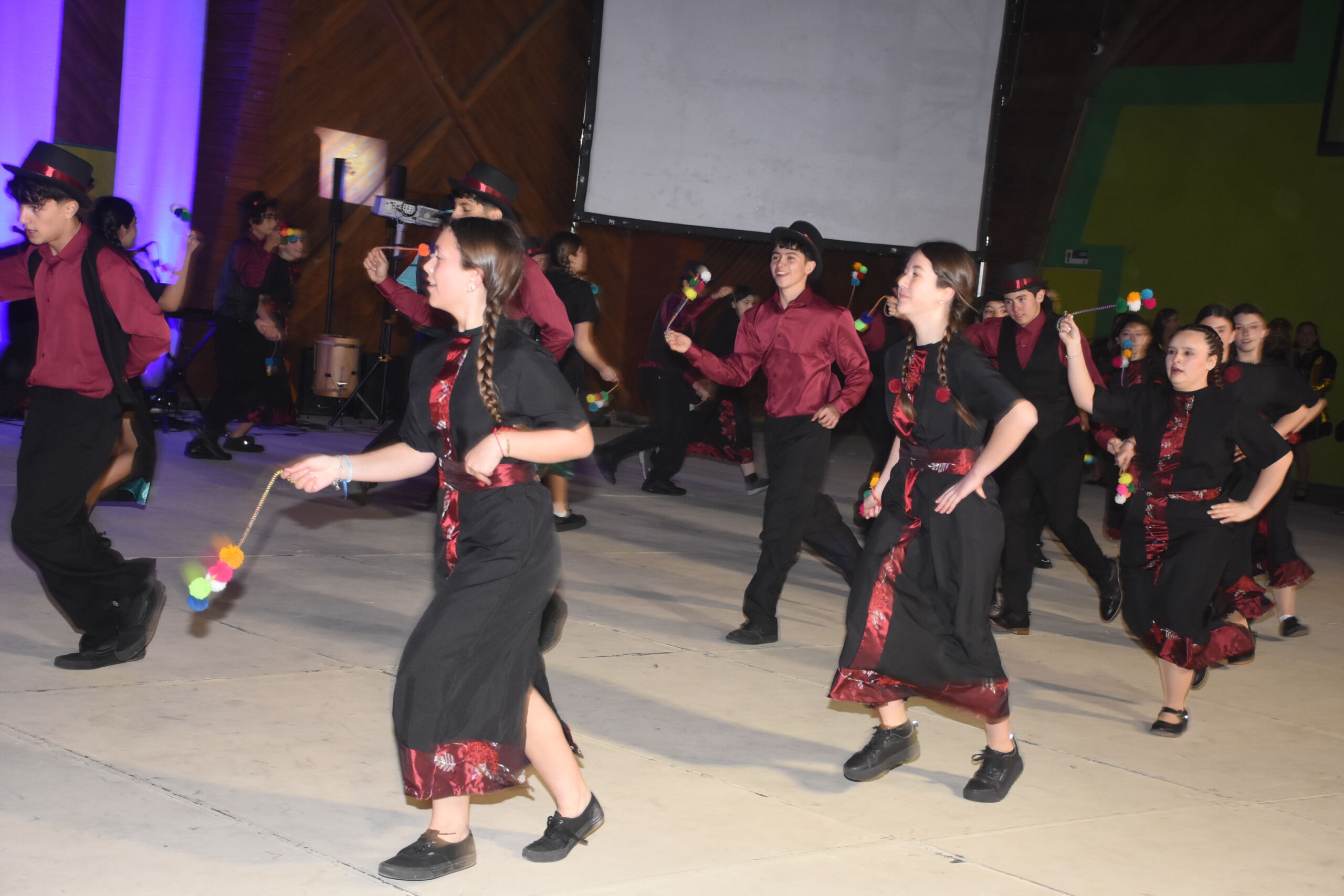 Desde 1° básico hasta IV° medio, nuestros alumnos junto a los profesores de Educación Física se unieron en un espectáculo inspirado en La Tirana y en los bailes nortinos, en homenaje a la Virgen del Carmen, patrona de Chile.