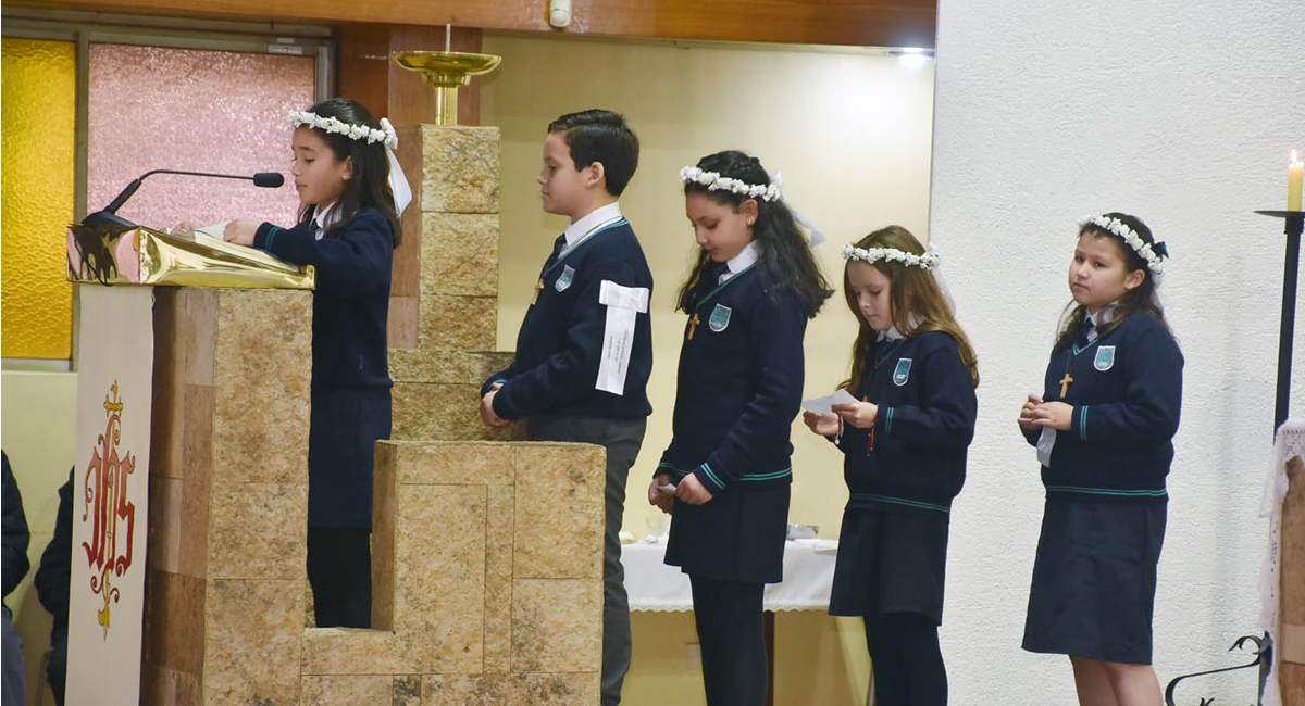 Gracias a la Capellanía de los Padres de Schoenstatt podemos celebrar la eucaristía por cursos y liturgias con los más pequeños y también la celebración eucarística con toda comunidad.